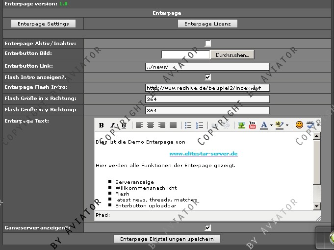 - Enterpage abschaltbar übers Adminmenü!!!!